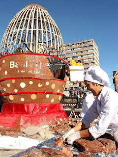 Ca ciocolată să rămînă fixată, a fost construit un suport special de lemn. 27 de cofetari au avut nevoie de două săptămîni pentru a face o cantitate suficientă de amestec de ciocolată pentru a crea oul. Reprezentanții Guinness Book of Records au înregistrat recordul și apoi oul de ciocolată a fost servit de participanții festivalului. Recordul precedent a fost stabilit în Belgia, atunci înălțimea oului de ciocolată nu depășea 8,32 metri.