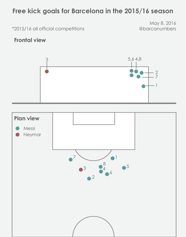 Barça's free kick goals in 15/16